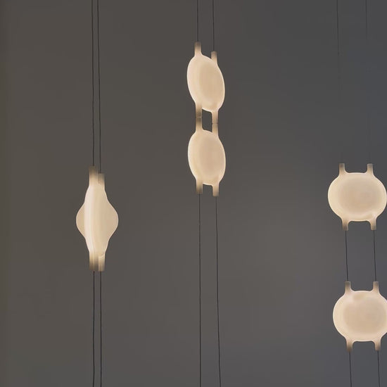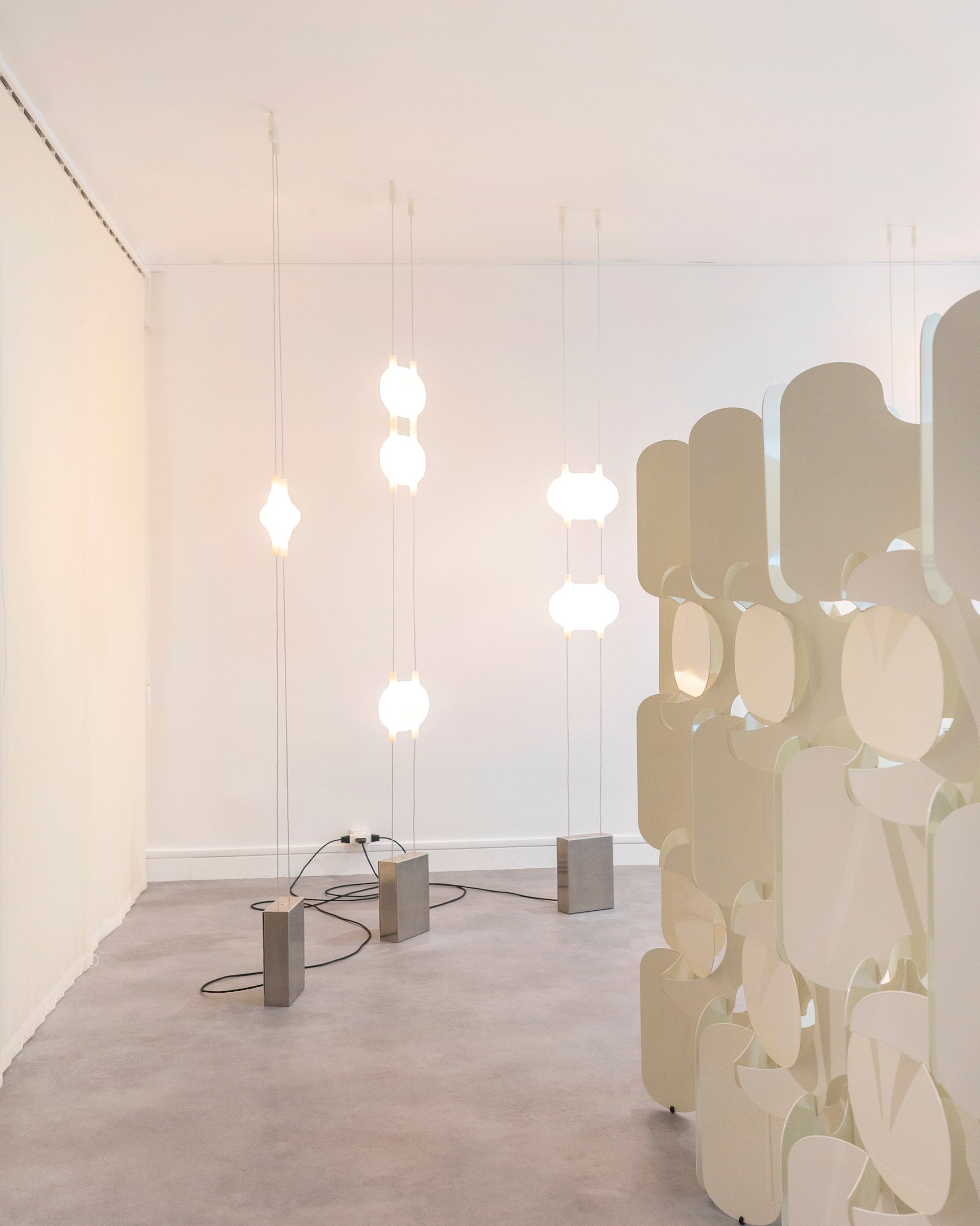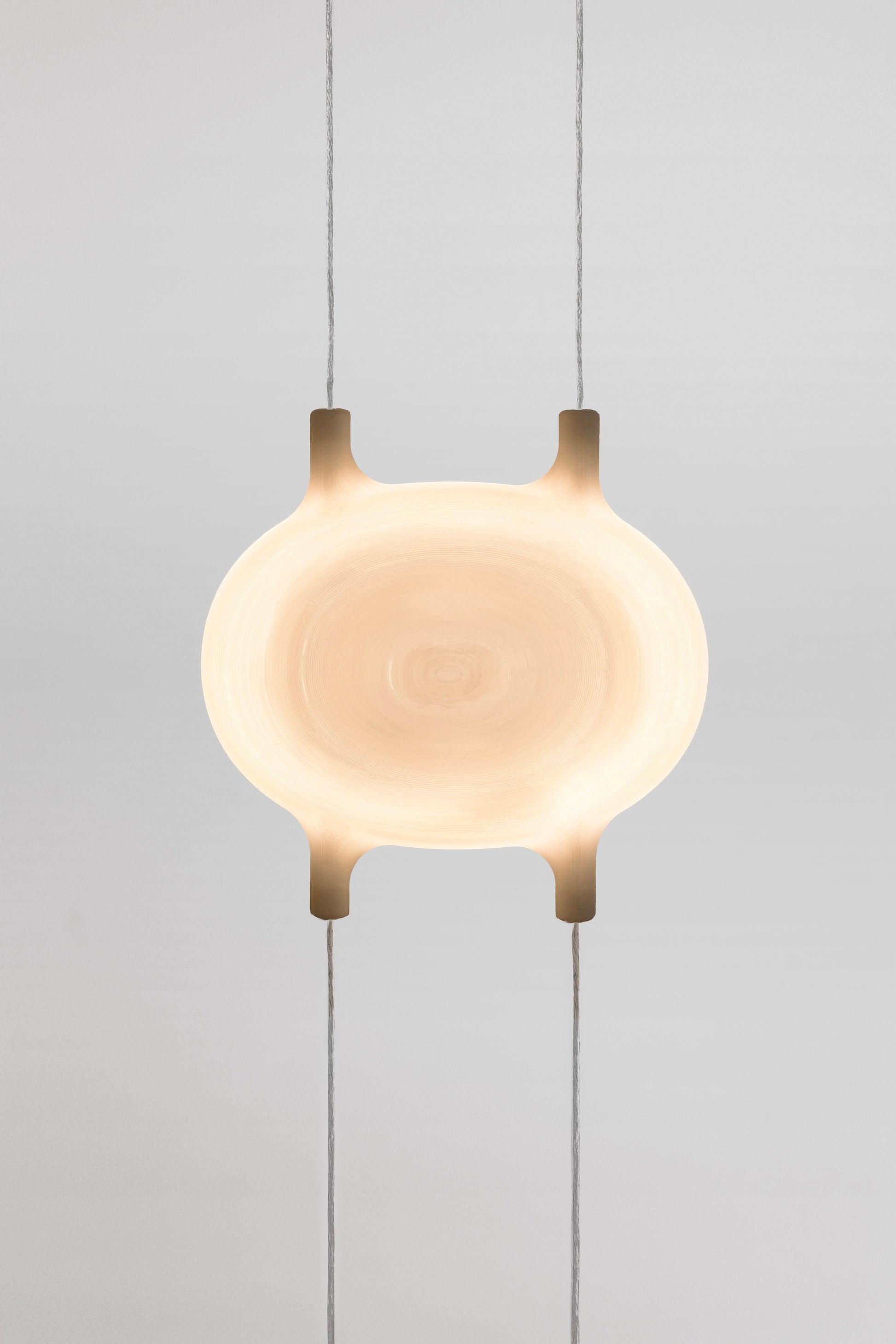 La lampe fait partie du système modulaire VEGA81. Elle est imprimée en 3D à partir de PLA issu de coquillage et maïs. Elle peut être utilisée seule ou dans un ensemble de modules comprenant différentes lampes accrochées aux fils conducteurs, qui s'ajoute jusqu'à 5 modules sur un seul circuit pour générer un ensemble autour du même idéal esthétique minimal aux notes space-age. Une ode à la circularité pour créer un ensemble ludique aux matières recyclable à l’infinie.